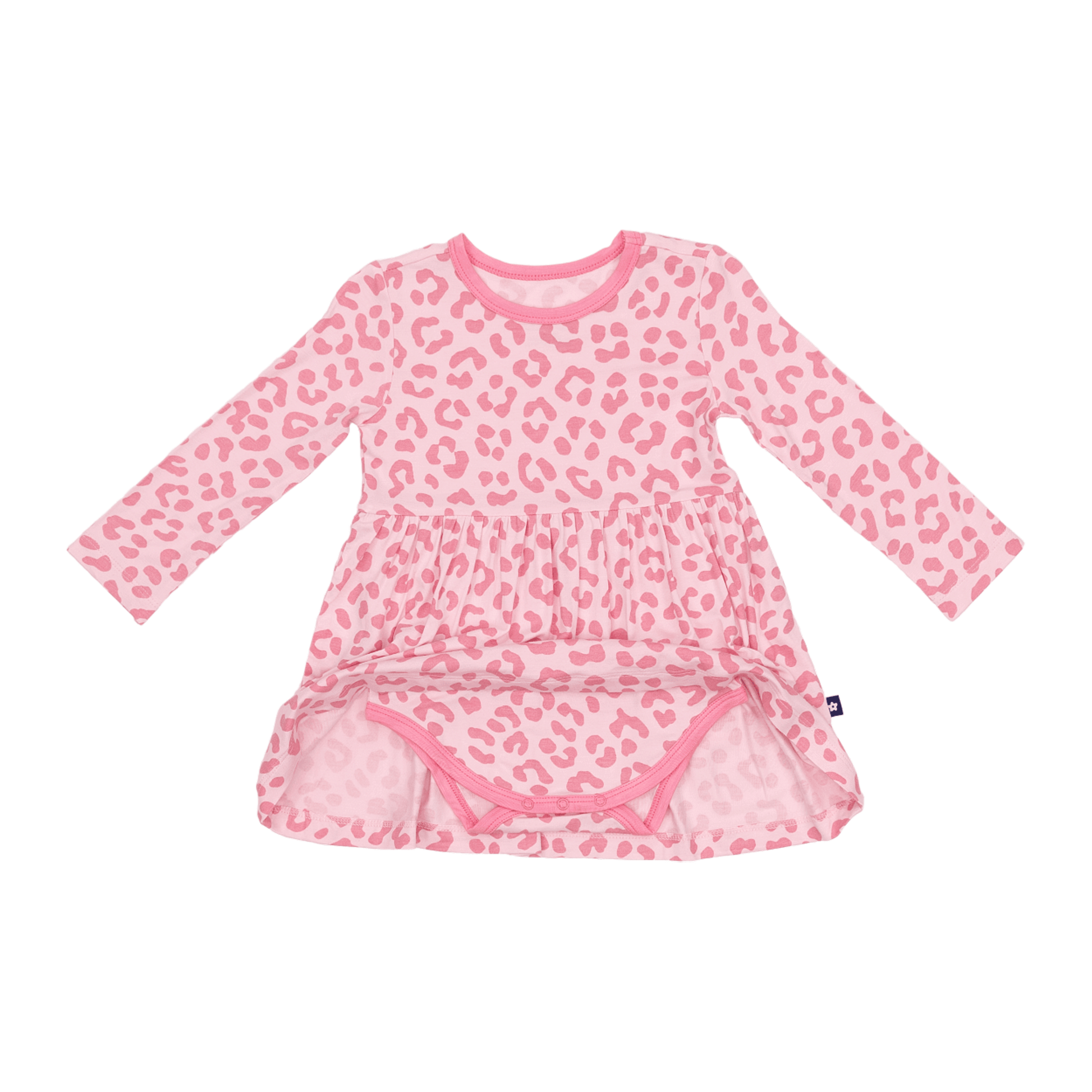 Long Sleeve Twirl Dress in Pink Leopard