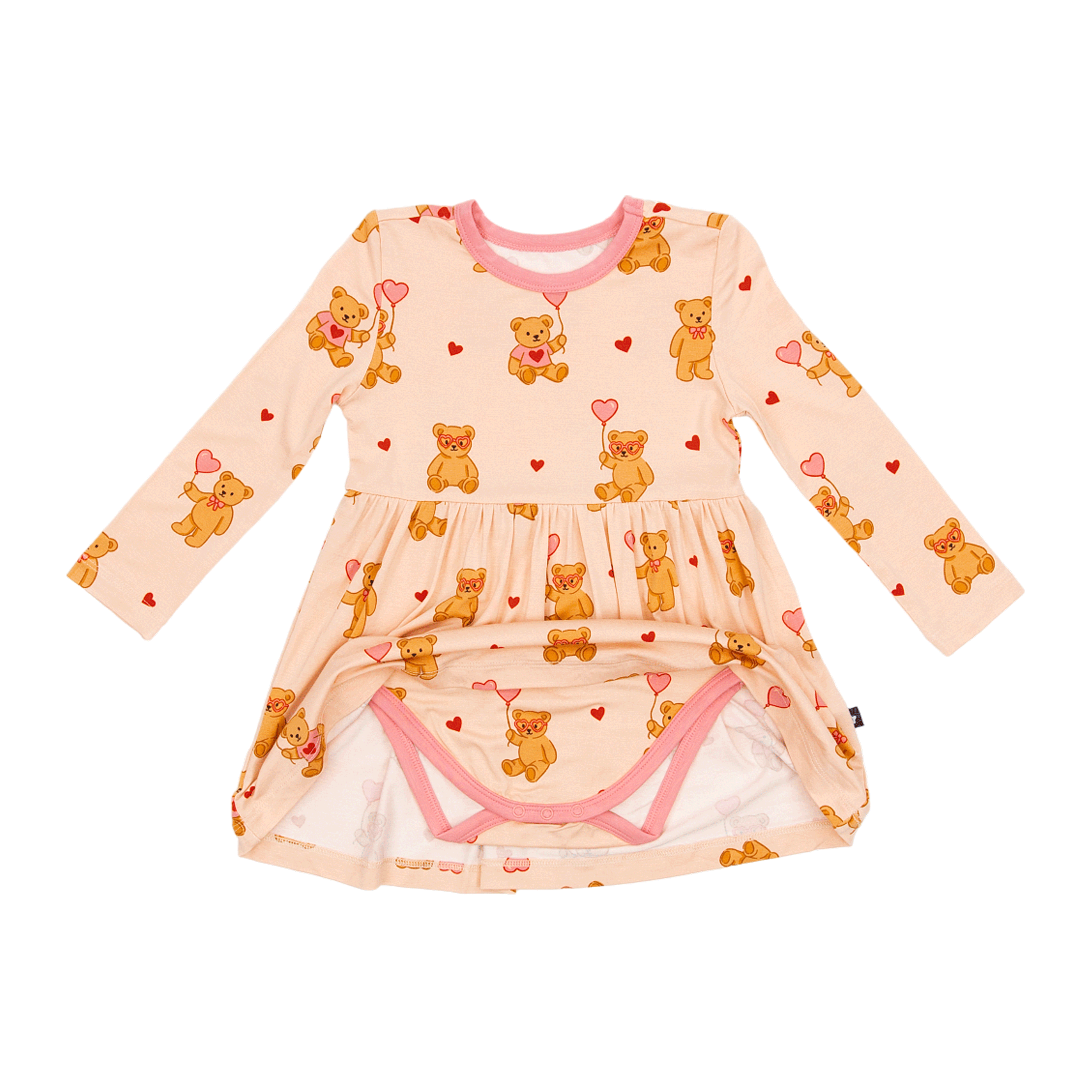 The flowy skirt adds beautiful movement for older sizes, while the built in bodysuit for smaller sizes makes diaper changes quick and fuss free. Every detail is designed for easy wearing, effortless movement, and everyday comfort.